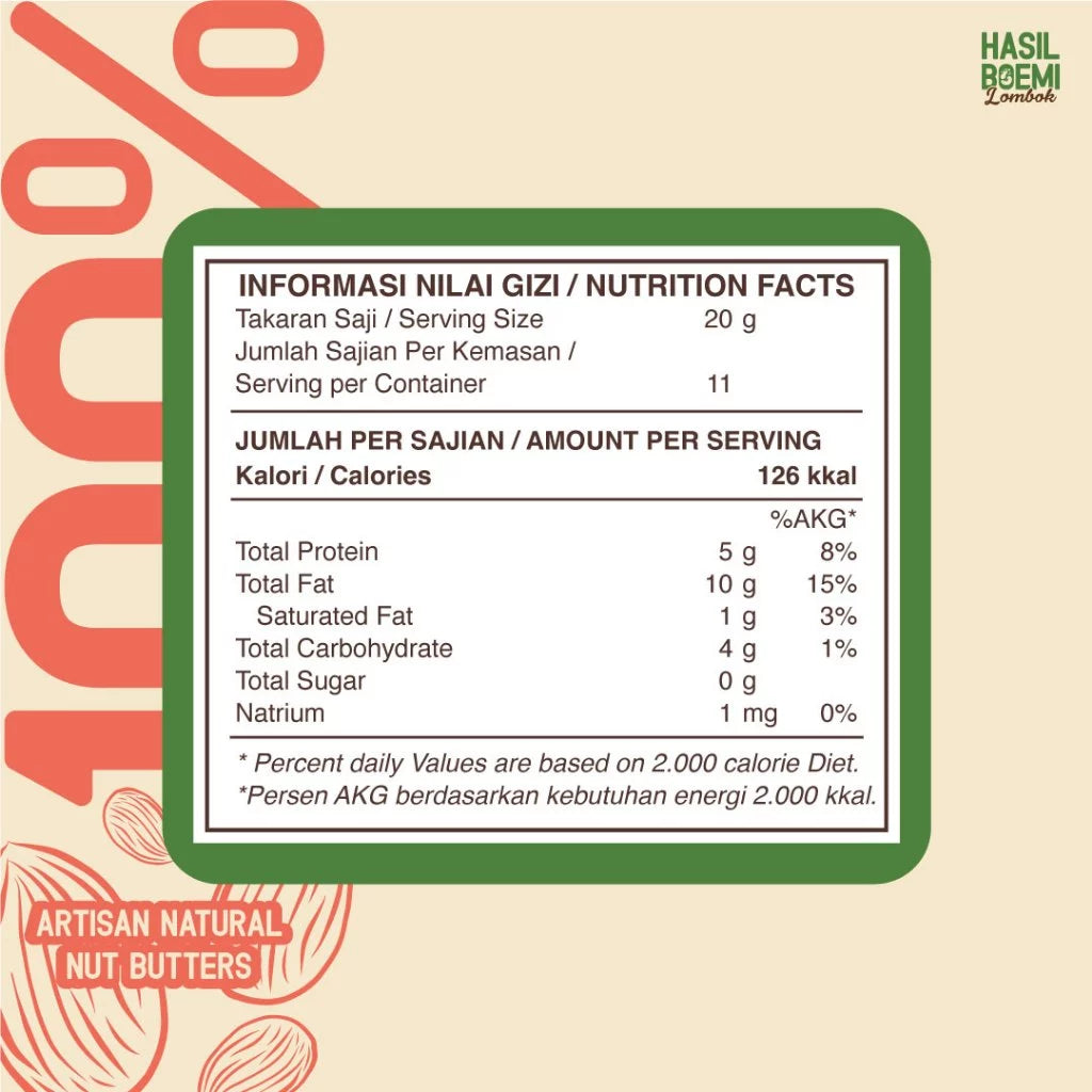 Mengandung lemak sehat, protein, magnesium, dan vitamin E. Dengan rasa manis alami tanpa tambahan gula, cocok untuk Anda yang mengutamakan gaya hidup sehat.